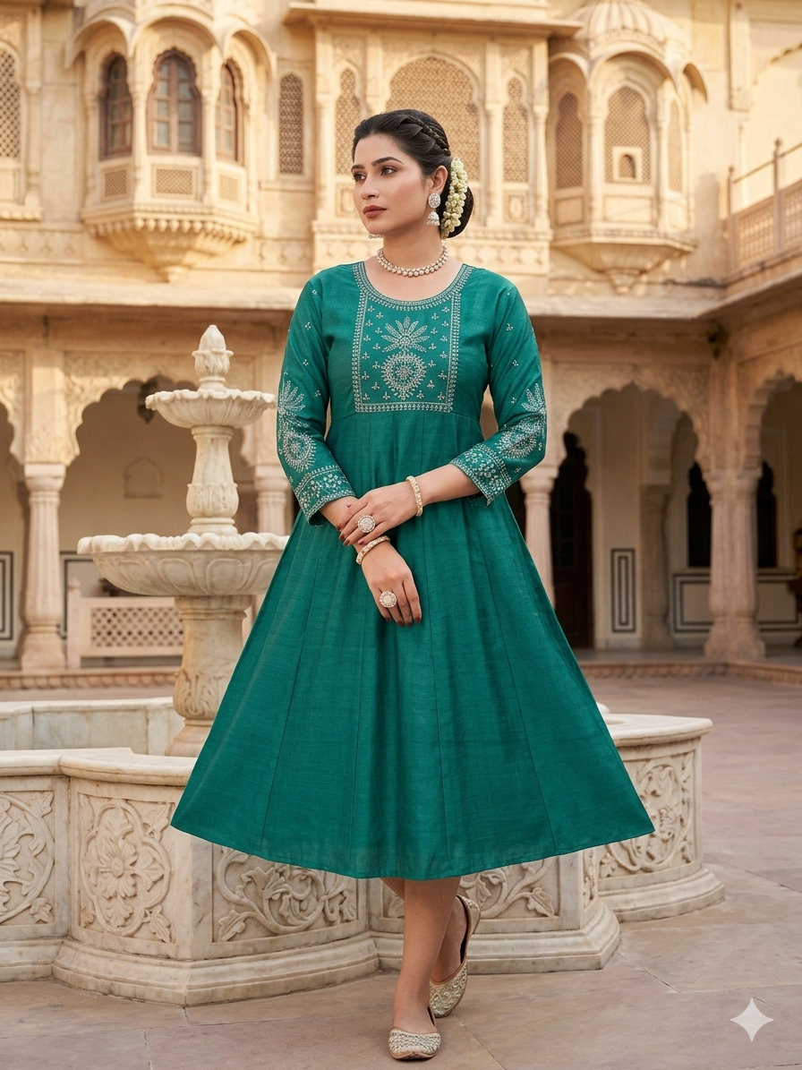 A Line Kurti – Neck and Sleeve Embroidered