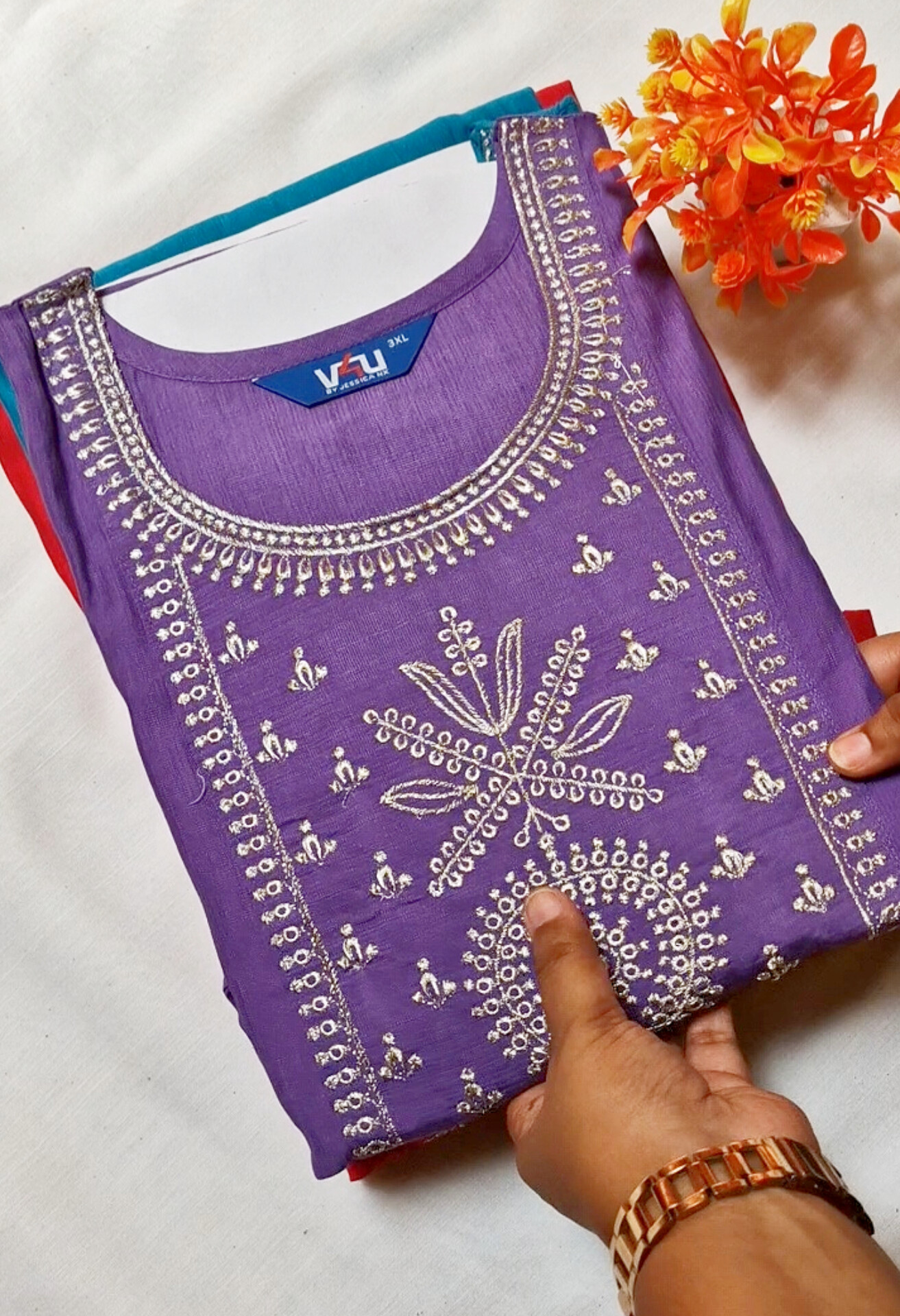 sleeves : 3/4 sleeve Embroidered