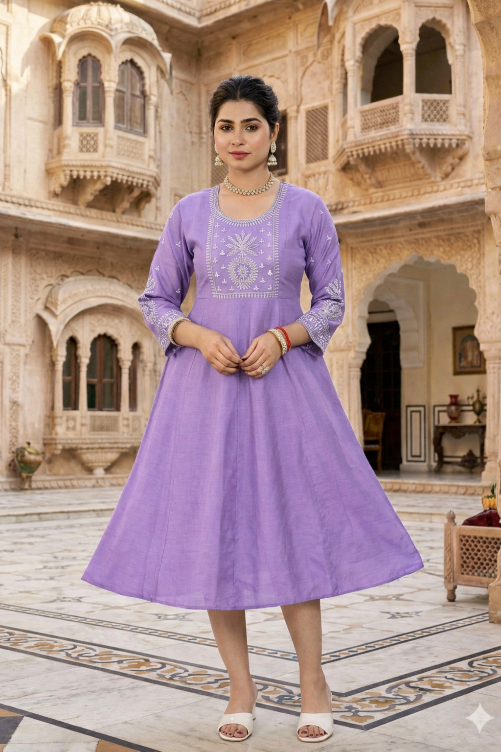 A Line Kurti – Neck and Sleeve Embroidered